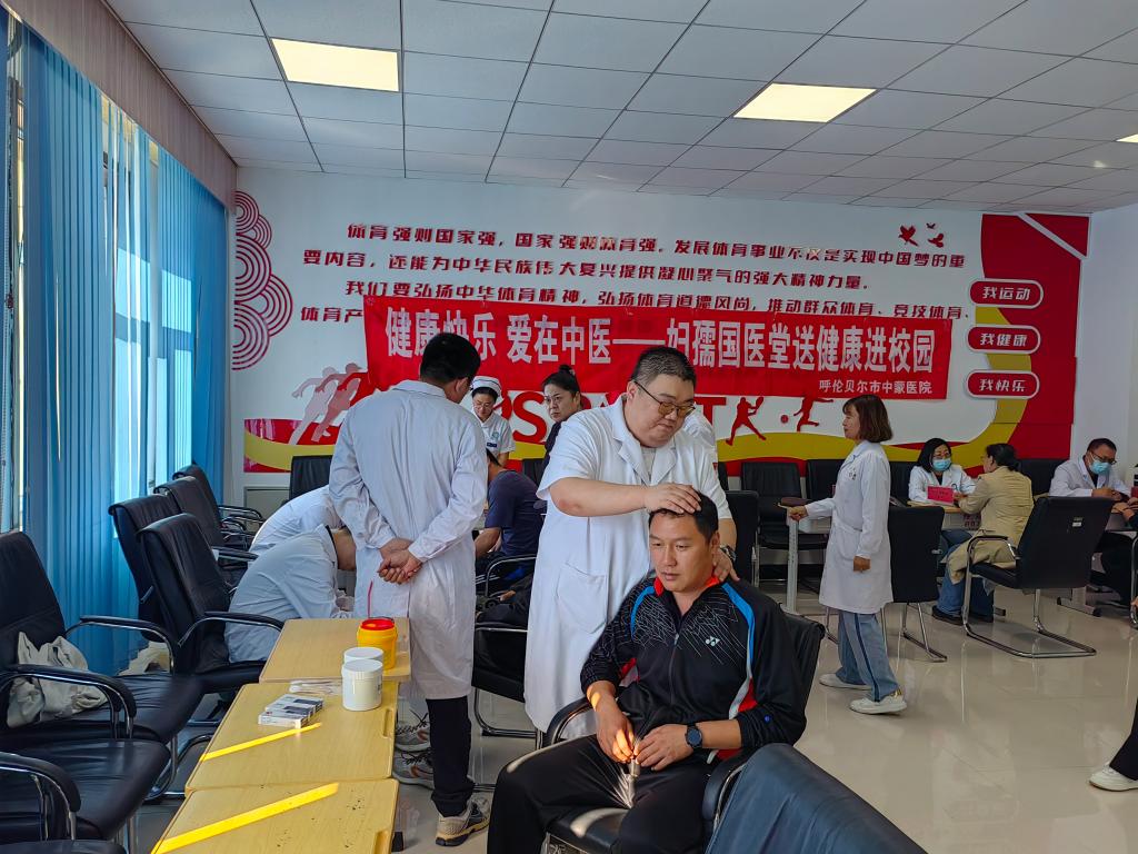 本次活动呼伦贝尔市中蒙医院精心选派了中医内科、肾病内分泌科、脑血管病科、心血管内科、妇孺国医堂、推拿科、康复科、蒙医疗术科、老年病科、中蒙药制剂室、药剂科等12个科室的医师和工作人员,为B-Sports全体教师带来了中医药(蒙医药)特色疗法义诊体验,中药代茶饮,中药标本及院内制剂展示等内容。专家们以高度专业和负责任的态度,为教师们提供精准的一对一健康咨询和诊疗服务,测量血压和血糖,开展中医特色适宜技术,借助推拿、针灸、浮针、刮痧等中医传统技术为教师缓解头痛、咽喉、肩颈腰腿痛等不适症状,提供了运动损伤预防、自我保健等方面的健康指导。教师们的沉浸式体验,不仅深入了解了中医药文化的精髓,还更加认识到中医药在健康保健中的重要作用。