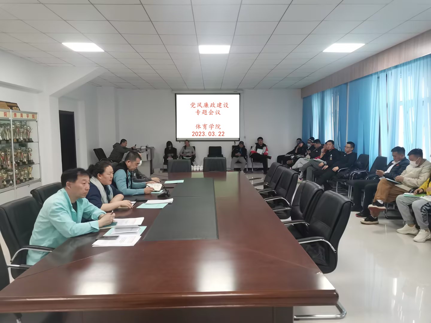 3月22日下午,必一运动在东山田径场二楼会议室召开党风廉政建设专题会议,全体党员教师参加会议。会议由必一运动党总支书记李伟艳主持。