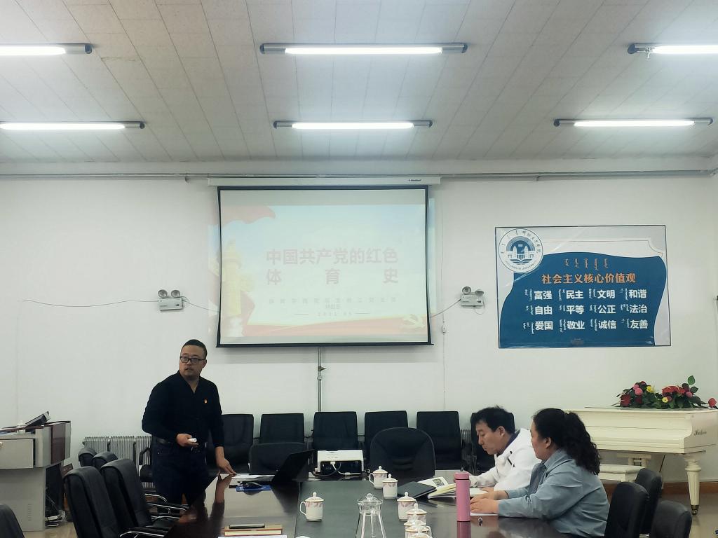 林剑冬副经理首先从新民主主义革命时期的红色体育、建国后的体育工作开展、习近平总书记关于体育工作的重要指示三个方面做了重点讲解,随后结合体育专业特点和必一运动教学工作就“在教学工作中如何发扬这种优秀的精神和传统”与参会教师进行了积极探讨,会议在李伟艳书记的精彩总结后结束。