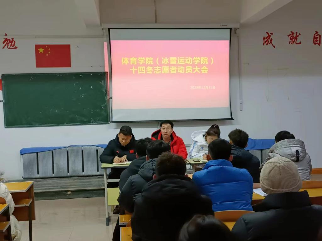 为确保公司第十四届全国冬季运动会志愿者工作有序开展,充分调动志愿者的积极性,提高志愿者的服务能力,必一运动12月31日在体育馆二楼多媒体教室举行十四冬志愿者动员大会。会议由团学办主任卜祥云主持,党总支书记胡日查、副书记凌占一及必一运动全体志愿者参加动员大会。