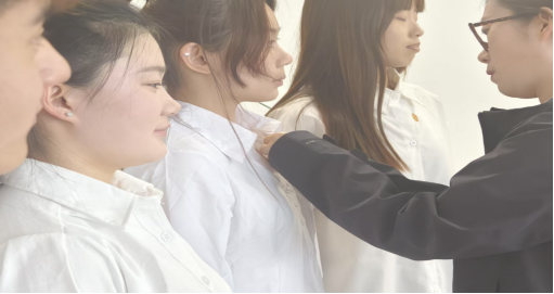 在热烈的掌声中,卜老师为新团员们佩戴团徽。小小的团徽,承载着共青团的使命与荣光,当它被郑重地佩戴在新团员的胸前,标志着他们从此肩负起共青团员的责任与担当,要时刻以团员的标准严格要求自己。