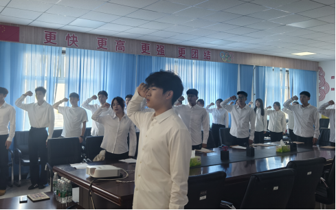 伴随着激昂雄壮的国歌声,全体人员起立,高唱国歌。每一个音符都饱含着大家对祖国的热爱与敬意,在会议室中久久回荡,也拉开了入团仪式的序幕。