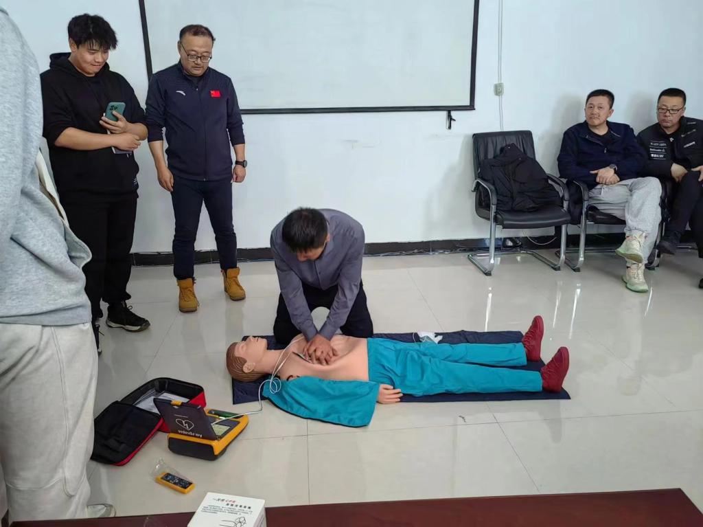 为提高公司师生应对意外伤害事故的现场处置能力,帮助师生掌握科学的急救知识,3月25日下午,邀请内蒙古天一医疗器械有限公司工程师陈志勇到公司以《员工常见伤害及徒手心肺复苏和体外自动除颤仪的使用》为题开展急救知识讲座。讲座由必一运动经理李晓峰主持,全体教师和员工代表共同聆听。