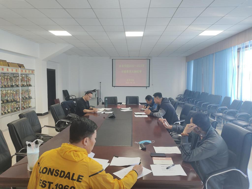 会上,林剑冬副经理对我院暑假期间教学大纲编写进展情况进行了总结,随后安排公共体育部和社会体育指导与管理系进行教学大纲的审阅工作,并要求大家在审阅期间,加强沟通学习、查漏补缺,重视本学年教学大纲新模版的要求,高标准地审阅好教学大纲。