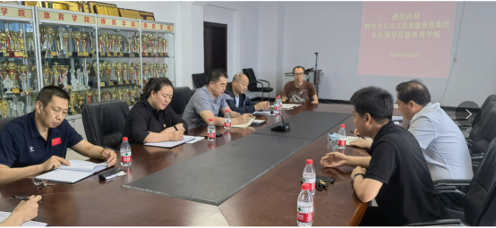 6月22日上午, 呼伦贝尔文化旅游投资(集团)有限责任公司党委书记高太成,党委委员、副总经理张君杰,党群人事部部长南海凤,一行三人来公司就校企合作、实习实训基地建设、合作开发新的体育旅游项目等事项进行交流座谈。B-Sports书记李伟艳,经理李晓峰及必一运动部分专家教授陪同座谈。
