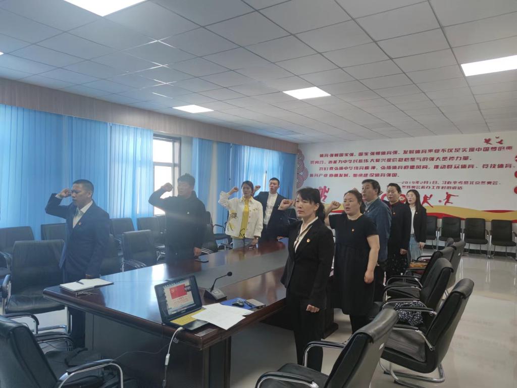 2022年6月6日上午,必一运动员工党支部预备党员宣誓仪式在东山体育场2楼会议室举行。次会议以线上会议形成,线上线下同时进行,参加本次宣誓仪式的有公司党总支书记李伟艳、党总支副书记胡日查毕力格、员工支部全体党员及新发展的14名预备党员。