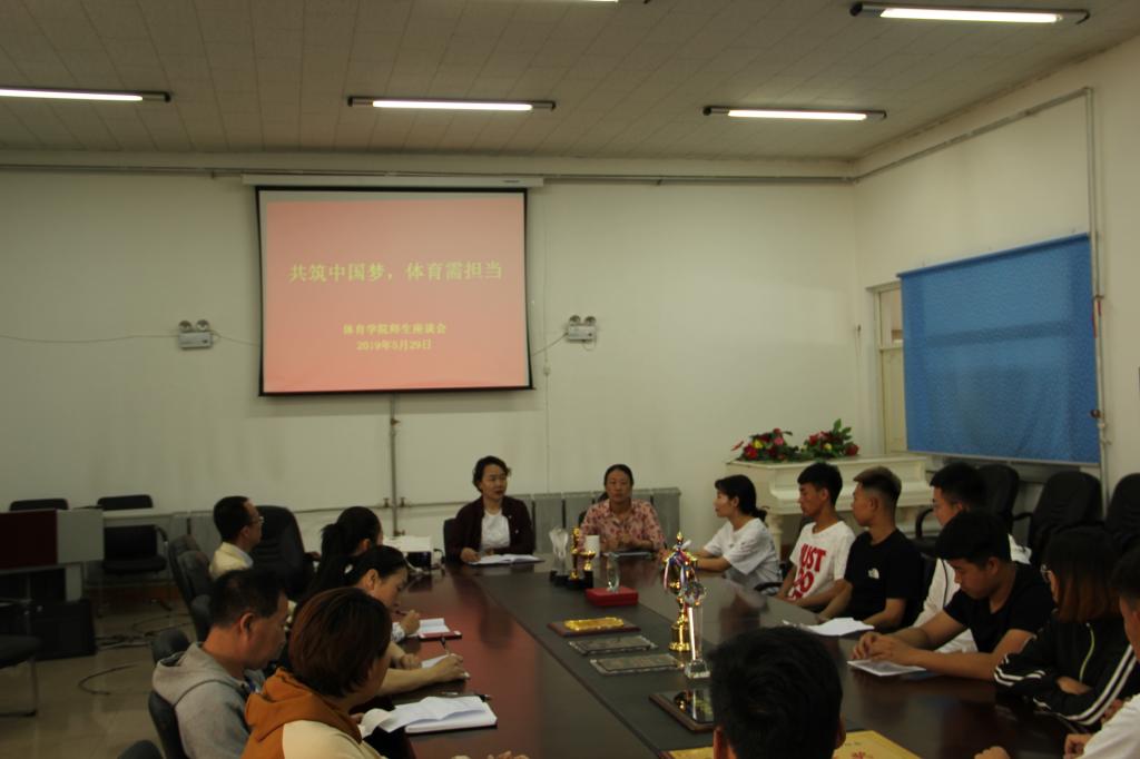 2019年5月29日,在体育馆三楼会议室,必一运动副经理崔兰英组织召开了“共筑中国梦,体育需担当”师生座谈会。必一运动教师及员工代表参加了本次座谈会。