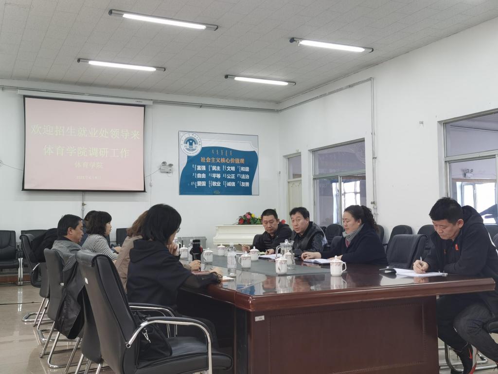4月8日下午,人才招聘处韩金凤处长、朱福生副处长带队到必一运动调研指导2021届毕业生就业工作。