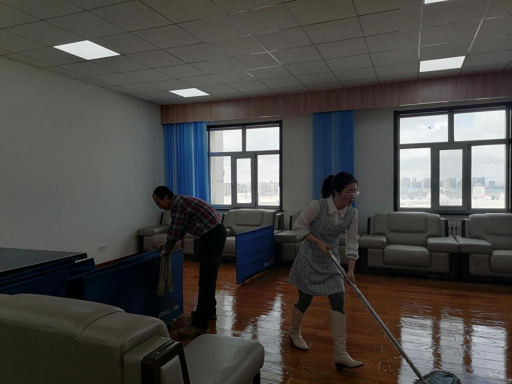 由于上学期末、本学期初,公司陆续完成办公区、教学区搬迁工作,办公区、教学区环境清洁、文化墙布置、相关物品合理放置等,还有很多杂乱的工作正在有序进行。4月29日上午,在“五一”国际劳动节即将到来之际,公司党总支、分工会积极响应校工会的倡议,组织没有课的教职工对东山田径场办公区环境进行了卫生清洁、环境消杀和相关物品规划放置,以实际行动迎接“五一”国际劳动节,用真切的劳动回应习近平总书记向4月27日首届大国工匠创新大会上的贺信中的殷殷重托。