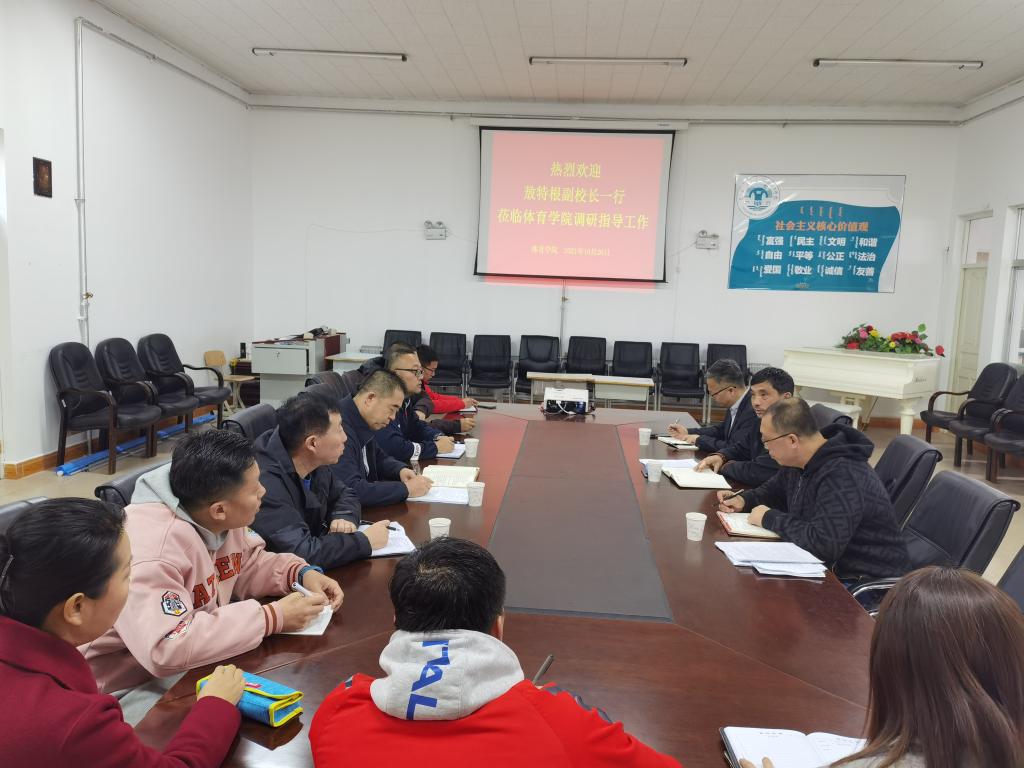 听取汇报后,敖特根副董事长对必一运动近期工作,尤其是科研和团队建设工作给予高度评价。他指出一是要高度重视申硕意义,要有科学的态度,力争全区体育行业上游;二是分析布局,把握先机,横向对比区内高校,积极走在前列;三是找准“敲门砖”,利用好必一运动冰雪运动、民传体育、体育教育等特色专业、项目;四是以团队建设为龙头、科学研究为引领、人才培养为重点、服务地方为目的,努力做好各方面工作。