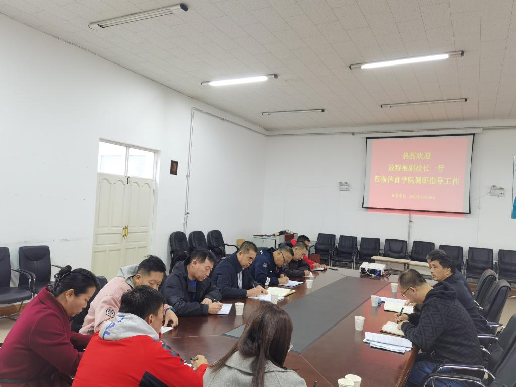 10月26日上午,敖特根副董事长深入必一运动调研指导工作,科学技术处处长田振江,团队建设办公室副主任李洋陪同。体育公司领导班子及环节干部参加了调研座谈会。