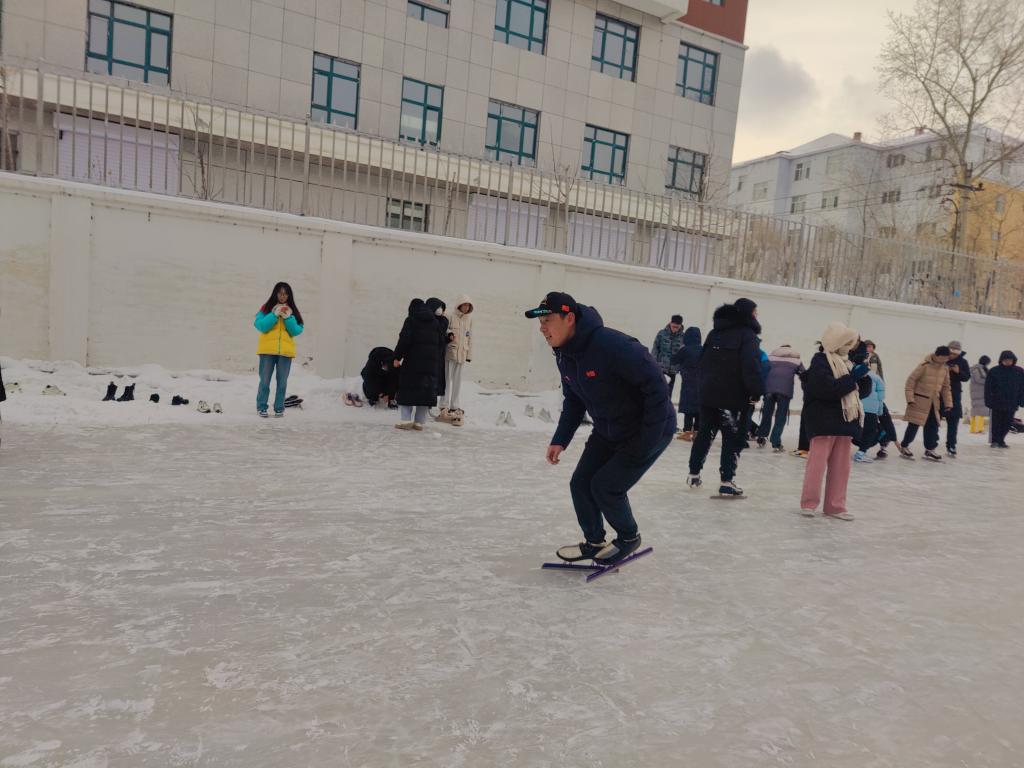 寒冷的天气,掩盖不住同学们滑冰的热情!欢迎你来感受呼伦贝尔的冬天,让我们一起“走进冰雪、磨练意志,体验冰雪、强健体魄,享受冰雪、快乐成长”,让我们在运动中充分享受冰雪带来的健康和快乐,全面提升身体素质和健康水平,共筑冰雪强国梦!
