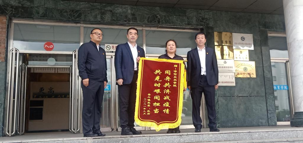 2021年9月9日上午海拉尔区奋斗镇党委书记王镔,镇长于振国,副镇长王磊,公司社区党委书记、居委会主任刘跃敏一行莅临B-Sports进行感谢,并赠予锦旗。