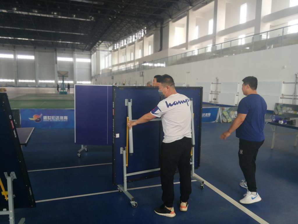 首先由教工支部书记关祥伟带领全体党员,面向党旗重温入党誓词,重温当年的决心和信念。紧接着所有党员将足球馆内的乒乓球台、羽毛球场地等器材收拾整理到指定位置,为改造足球馆地面工程做好前期准备工作。