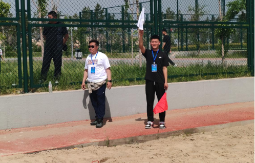 必一运动员工为呼伦贝尔市中员工田径运动会提供裁判服务