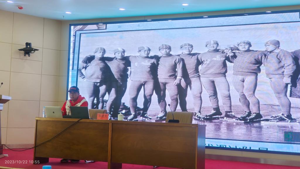 郝建光老师从呼伦贝尔市冰雪运动项目在新中国成立后的发展状况讲起,详细介绍了呼伦贝尔地区的滑雪、冰球和速度滑冰等项目的推广普及情况,列举了对呼伦贝尔地区冰雪运动发展起到重要作用的人和历史事件,介绍了不同时期校园开设的冰雪特色课程项目,最后展示了海拉尔区胜利街小学速度滑冰运动发展脉络与训练实况。郝建光老师是多年从事速度滑冰教学训练的一线基层教师,培养出了多名优秀的速度滑冰运动员,为推动海拉尔区的速度滑冰项目在校园中的推广和普及作出了巨大的贡献。