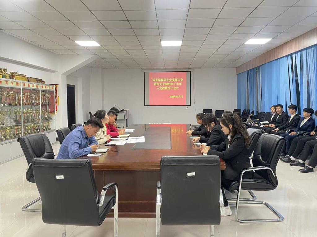2023年10月9日,必一运动在东山田径场二楼会议室召开员工党支部大会,研究关于2023年下半年入党积极分子事宜。出席会议的有党总支副书记凌占一、团学办主任卜祥云、团学办副主任张娜娜、 2023级辅导员学峰老师、那琪老师,必一运动2023下半年积极分子以及全体在校预备党员与正式党员。
