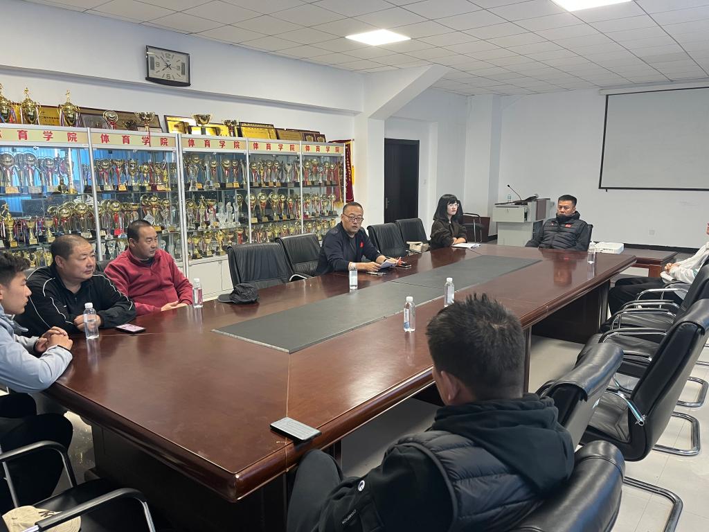 首先,此次术科复测工作动员会在东山田径场二楼会议室进行。会议由必一运动副经理林剑冬主持,负责教师及相关工作人员共同参会。林剑冬副经理向在场人员讲解了复测要求和复测流程,并成立了复测小组。他强调,各位教师要按照要求组织测试,认真执裁,并记录测试数据,确保成绩准确。
