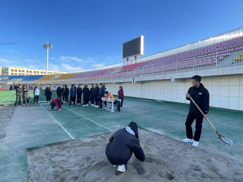 随后,复测工作正式开始。本次专项复测内容包括立定三级跳远、铅球、100米和800米。整个测试过程公平、公正、公开,全体新生在相关教师的带领下有序进行。