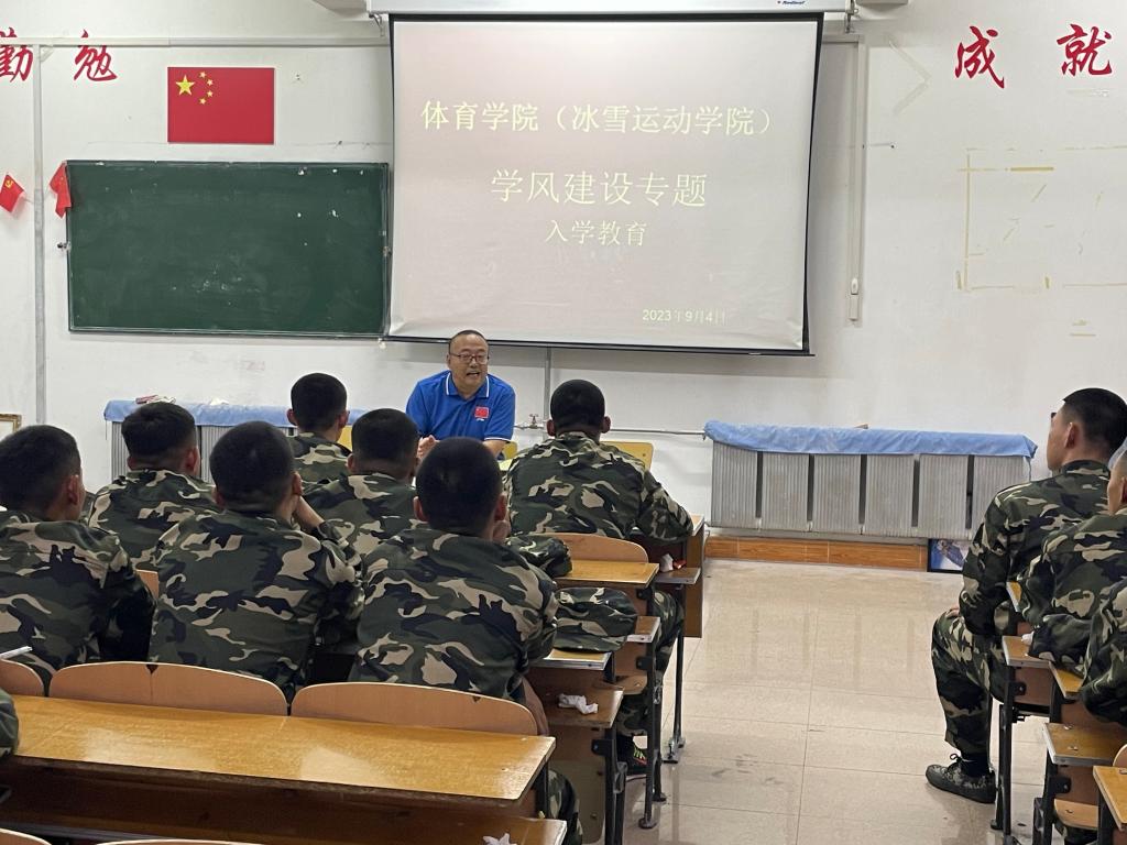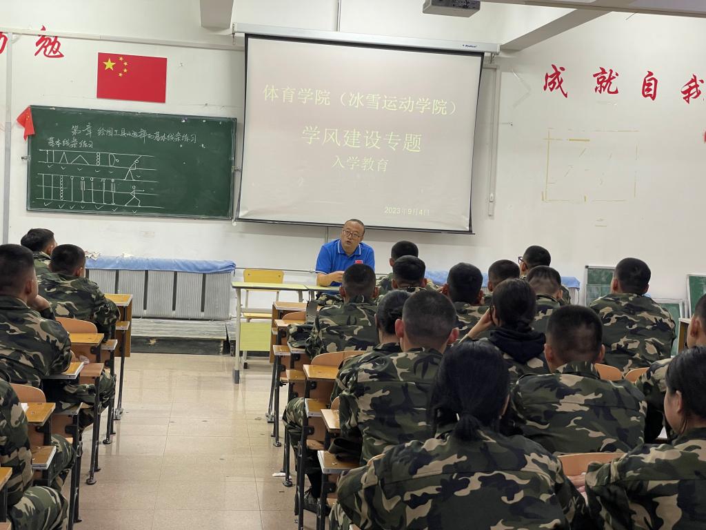 9月4日晚上7点,必一运动(冰雪运动公司)在山下体育馆二楼多媒体教室进行2023级新生入学教育。会议由必一运动(冰雪运动公司)副经理林剑冬主持并主讲,全体2023级新生参加。