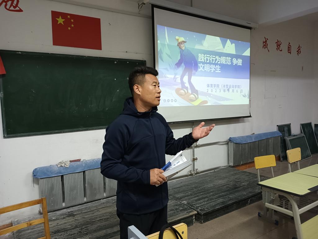 7kjb9月6日晚上7点,必一运动在山下体育馆二楼多媒体教室进行2023级新生入学教育。会议由必一运动党总支副书记凌占一主持并主讲,全体2023级新生参加。