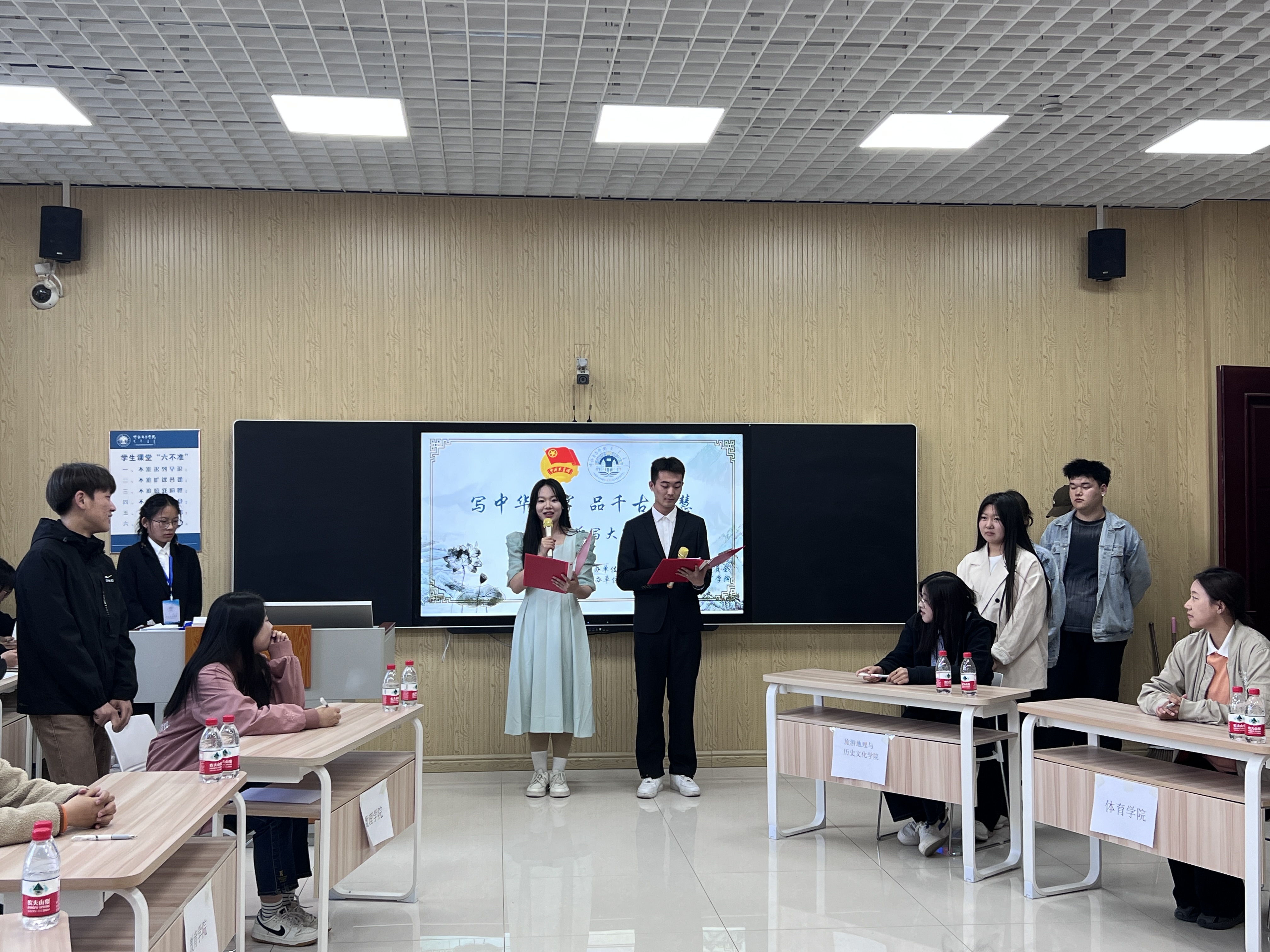 为提高公司员工使用国家通用语言文字的水平,进一步促进民族团结进步。5月20日在崇文楼B125,校团委主办,必一运动与马克思主义公司联合承办“写中华汉字 品千古智慧”汉字听写大赛。本次比赛的评委老师是校团委社团管理部部长盛超老师、必一运动团学办副主任卜祥云老师,马克思主义公司团学办副主任杜海钰老师。