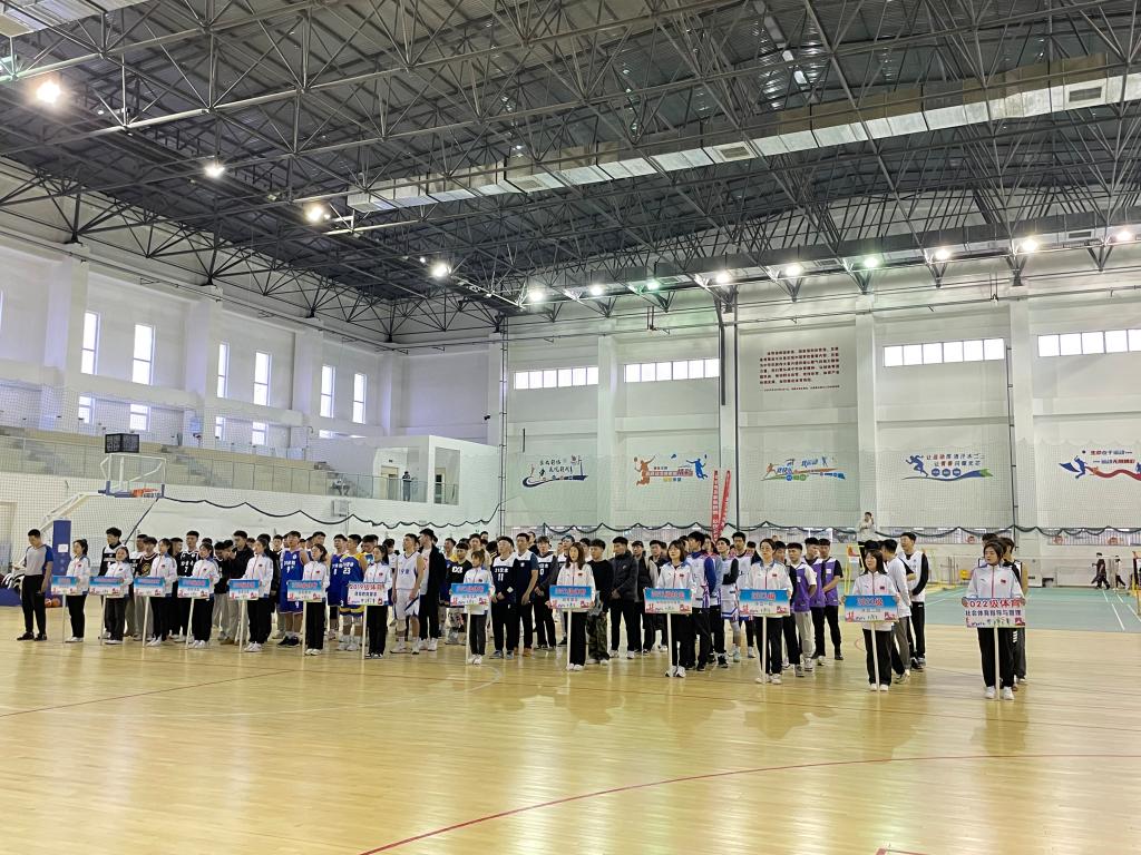 4月19日下午5点在东山足球馆,必一运动举行以“学习二十大 永远跟党走 奋进新征程”为主题迎新生篮球赛的闭幕式。
