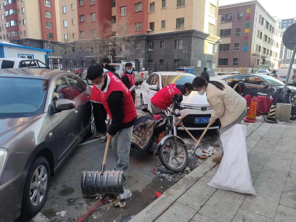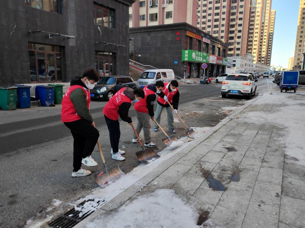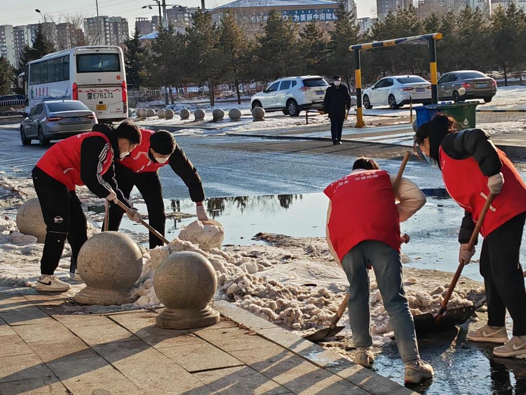 活动中,志愿者们身穿红色马甲,师生齐心,不畏寒冷,积极主动,齐心协力,相互配合,挥舞着铁锹和扫帚一点点把冰层,积雪和垃圾集中铲到一起,装进袋子。志愿者们脸冻得通红,手也渐渐的冻僵,仍然挥舞着手中的扫雪工具继续清理,大家忙碌的身影映衬着红色的马甲,在冬天凛冽的寒风中构成一道亮丽的风景线。