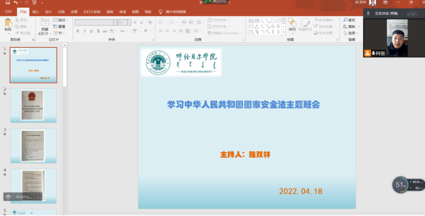 为提高高校学生国家安全意识,树立新时期总体国家安全观,2022年4月18日下午19点, 2020级体育教育本二班使用腾讯会议软件、在线上组织全班同学认真学习了《中华人民共和国国家安全法》和《中华人民共和国反间谍法》等法律法规。