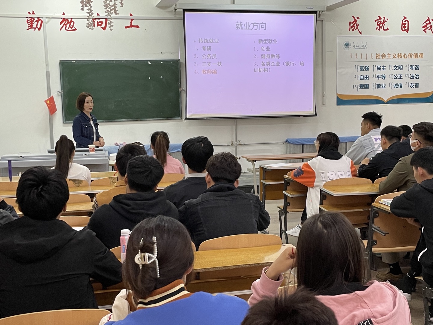 讲座由党总支书记李伟艳老师主持,教研办邢末、团学办郭晨老师和100余名同学共同聆听了这次讲座。张微老师从体育专业就业方向谈起,内容涉及到各地区教师招聘人数、报考时间、内容、流程、复习方法等具体问题。此次讲座资料丰富详实,列举了大量公司毕业生刻苦备考,金榜题名的案例。通过此次讲座同学们对国家和地区相关就业政策、就业形势、体育相关专业就业方向、教师招聘和特岗教师招考等有了更加深刻和清晰的了解。