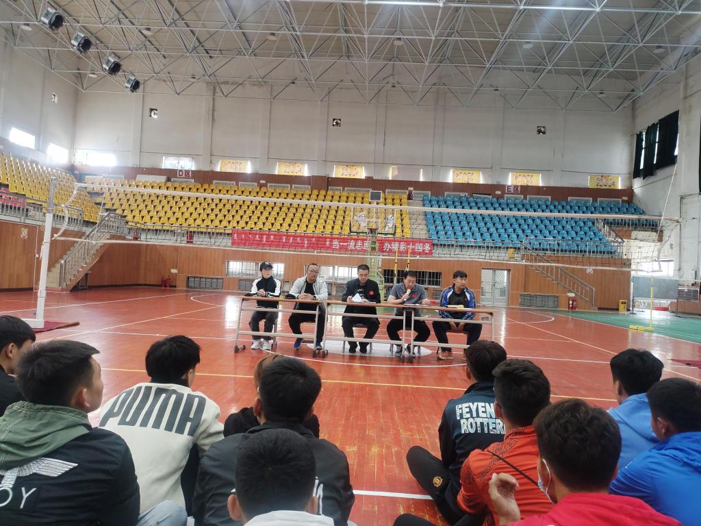 2020年9月9日中午必一运动在体育馆召开本学期第一次全体员工大会,必一运动经理李晓峰,党总支副书记胡日查毕力格,副经理林剑冬,团学办主任郭晨,团总支书记卜祥云及17级、18级、19级全体员工参加,会议由团学办主任郭晨老师主持。会议首先由胡日查毕力格副书记传达了近期公司召开的专项工作会议内容,对员工返校期间疫情防控方面提出了具体要求,要树立公共卫生意识,养成良好的生活卫生习惯,遵守校规校纪,要强化员工返校后公司日常管理,进一步加强校园封闭式管理,营造积极向上的学习生活氛围。其次林剑冬副经理要求所有员工做好员工返校后公司产品安排,统筹做好返校后的线下教学安排,尽快适应公司的学习、生活、训练环境,坚持一院一策,确保教学质量。最后李晓峰经理指出,要深刻领会中央和上级对复学复课的有关要求,切实把思想和行动统一到中央、上级、公司的决策部署上,按照严格防控四字要求,履行主体责任、认真分析研判、周密计划部署、严格落实防控,保障师生身体健康,做好返校复课各项工作。