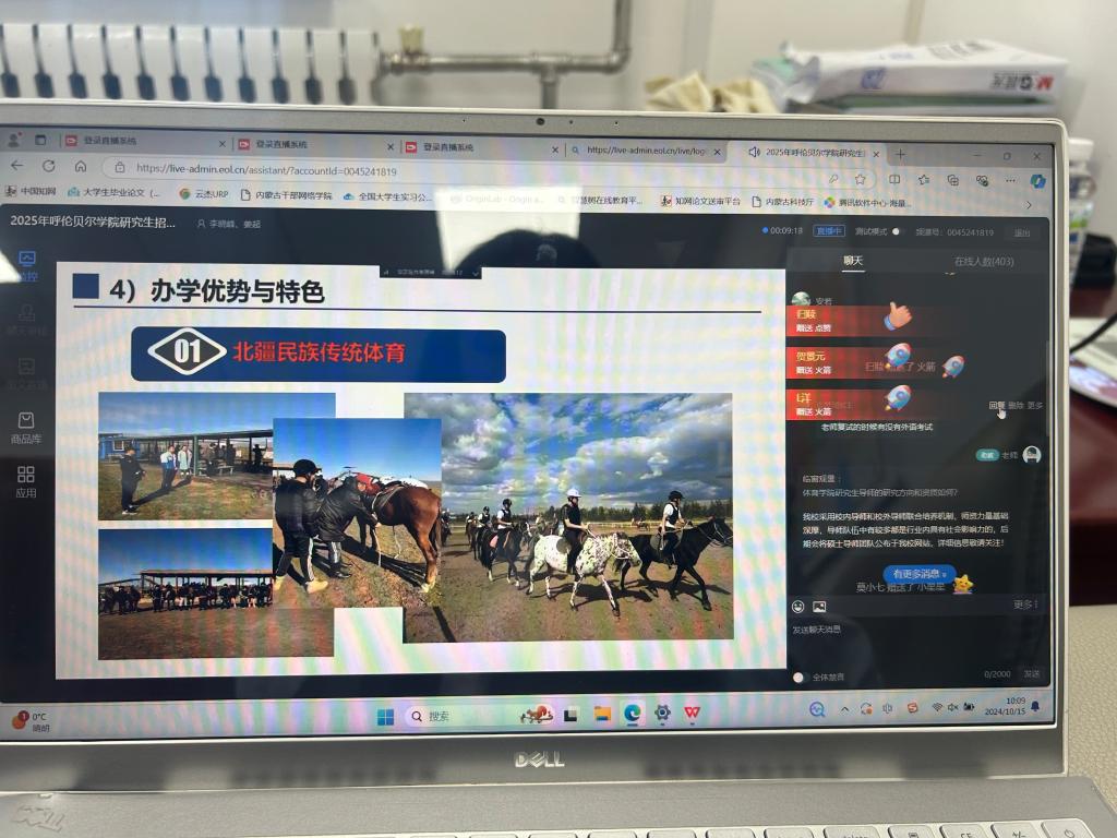 2024年10月15日上午10:00,必一运动经理李晓峰通过线上直播的形式,针对2025年公司体育硕士专业学位研究生的招生工作进行了宣传和介绍。本次活动吸引了众多员工的关注,高峰时期观看人数达4000余人次,互动热烈,取得了显著的宣传效果。